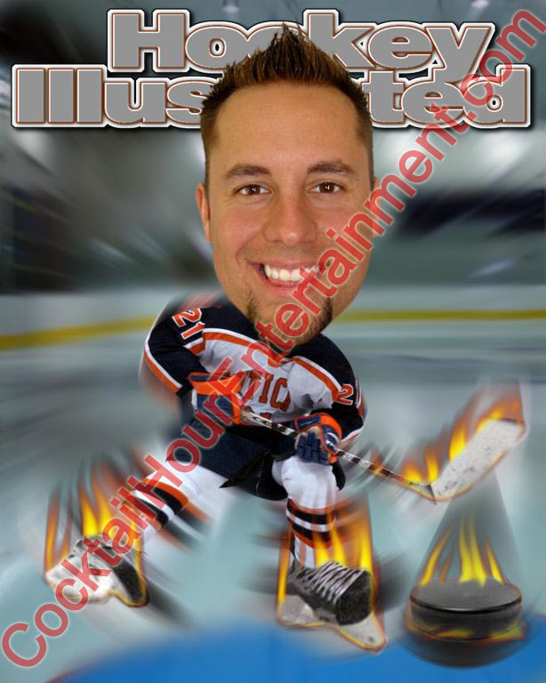 Your guests have their larger than life head superimposed over any magazine cover or fun photo. Hilarious results and a great keepsake! Custom backgrounds available.